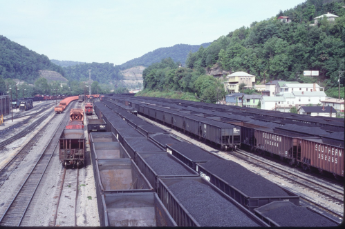 The Bluefield Train Yard remains the busiest yard in the (now) Norfolk Southern Railway system. The location of the division’s mechanical shops was determined because of the area’s natural gravity “hump,” creating the highest point on what had previously been the Norfolk & Western mainline. Railroaders used gravity to help collect eastbound coal cars into unit trains. In the early days, coal cars were “draped” over the hump and sent eastward in trains of 100 or more cars.